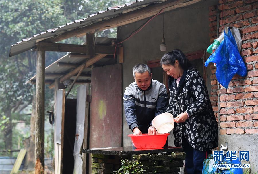 10月30日,杨珍和爱人在羊圈边的小屋前忙碌。 新华社记者 魏培全 摄