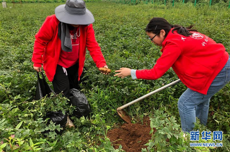 在布拖县布江蜀丰农业科技示范园试验田地里,布拖马铃薯科技小院的研究生们进行马铃薯取样(7月21日摄)。 新华社记者 江宏景 摄
