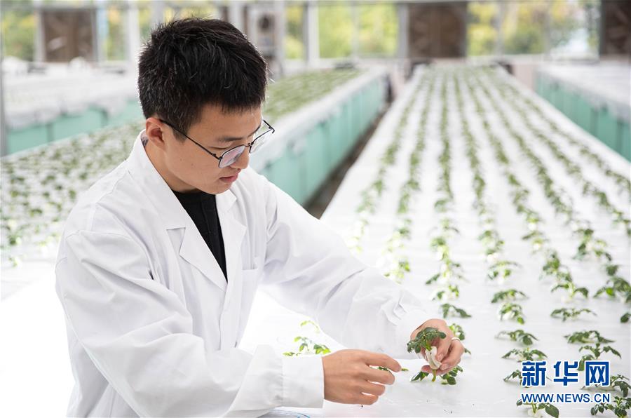 在布拖马铃薯科技小院,四川农业大学农学院硕士研究生冯豪杰在扦插定植马铃薯芯苗(10月18日摄)。 新华社记者 江宏景 摄