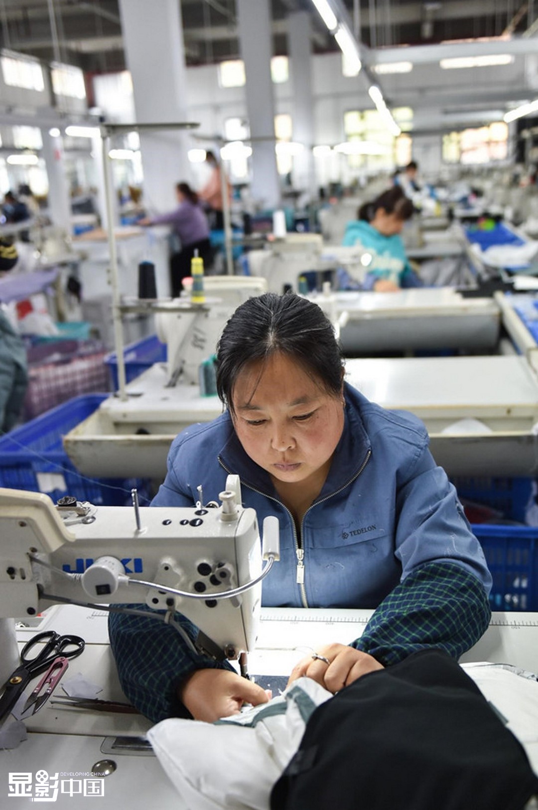 坚持植树造林,不仅让荒山变青山,也为西沟招来了客商。2017年,全国服装行业百强企业——浙江太子龙服饰有限公司落户西沟村,并将旗下服饰产业总部设立于此,定向建设扶贫工厂,吸纳村民就业。新华网 武斌/文 柴婷/摄