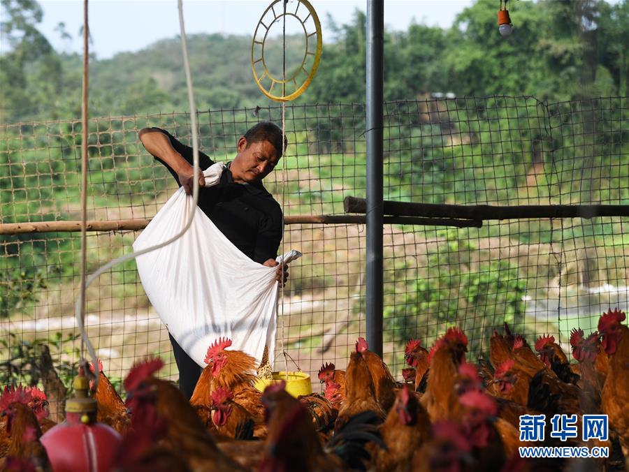 11月6日,张荣和在给鸡喂食。新华社记者 王全超 摄