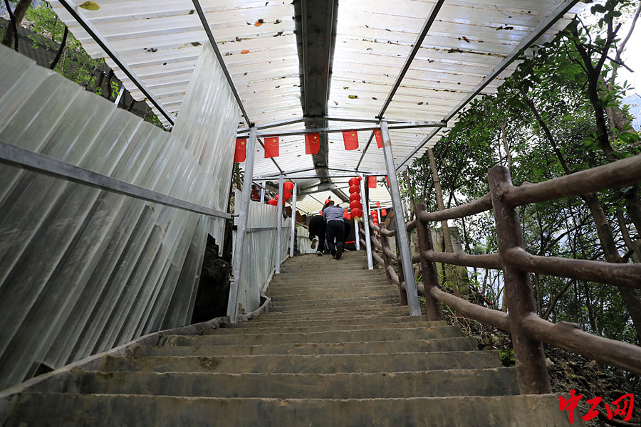 11月5日,湖北宜昌市,山路陡峭,蔡桂林和工友们抬的很吃力。(来源:视觉中国)