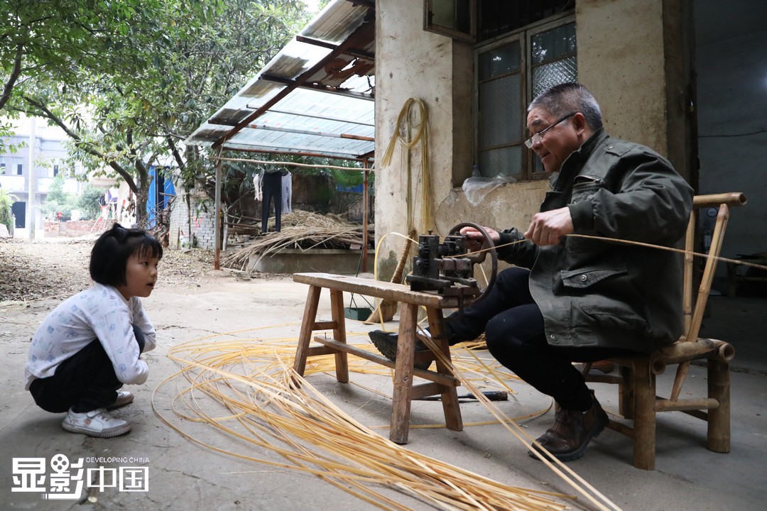 借助直播和短视频的风潮,江西省新余市的竹编匠人李年根在近一年内迅速走红,在各大社交网络平台上收获了上千万粉丝。凭借坚守50多年的竹编好手艺,李年根从过去小山村里的“小篾匠”成了如今深受广大网友喜爱的“竹编老李”。图为李年根正在工作室门前对竹篾丝进行加工。新华网 王凯丰摄