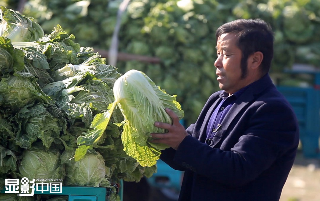 57岁的付新成是当地蔬菜专业种植合作社的理事长,也是由他带领着乡亲们做大了当地的白菜种植产业。“今年雨水好,白菜长势喜人,包心又紧又实,味道更甜,价格也让人满意。”付新成高兴地说。图为付新成检查已经装载好准备运输的大白菜。新华网 夏铭阳摄