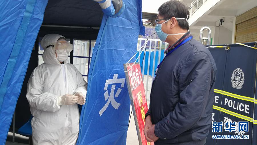 张宏(右)在恩施土家族苗族自治州利川市走访隔离点,了解疫情防控措施落实情况(2月18日摄)。新华社发