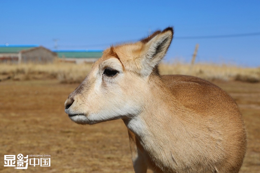 初冬的青海湖畔,芳草萋萋,气温渐凉。一只年幼的普氏原羚漫步在草原上,身上的毛色几乎与枯黄的牧草融为一体。接近一户人家的时候,它突然加快了脚步,欢快地奔跑了起来。正在草原上漫步的普氏原羚“小瘦瘦”。新华网 卡娅梅朵摄