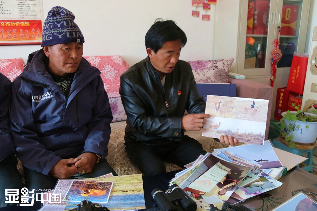 为了进一步改善青海湖周边地区的生态环境,青海湖国家级自然保护区管理局于今年9月28日正式成立青海湖首批牧民巡护队,共有3支牧民巡护队,总计23名牧民参与。图为尖木措和巡护队员们展示巡护工作中拍摄的照片。新华网 卡娅梅朵摄