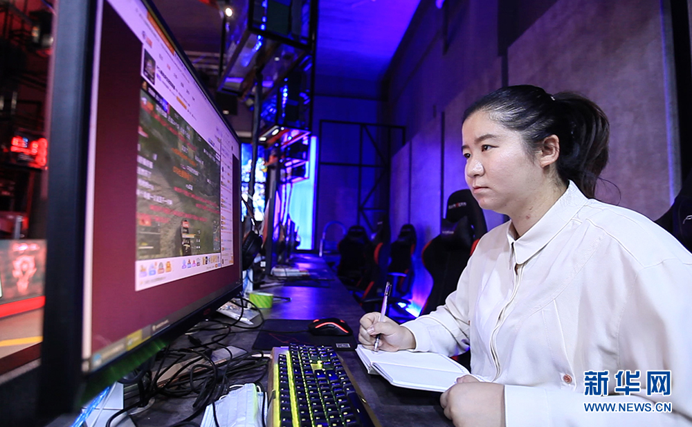 平时,张诗尧需要记录、整理一些电竞比赛的解说话术及解说词,并将有用的内容分享给她的学生们。新华网 夏铭阳 摄