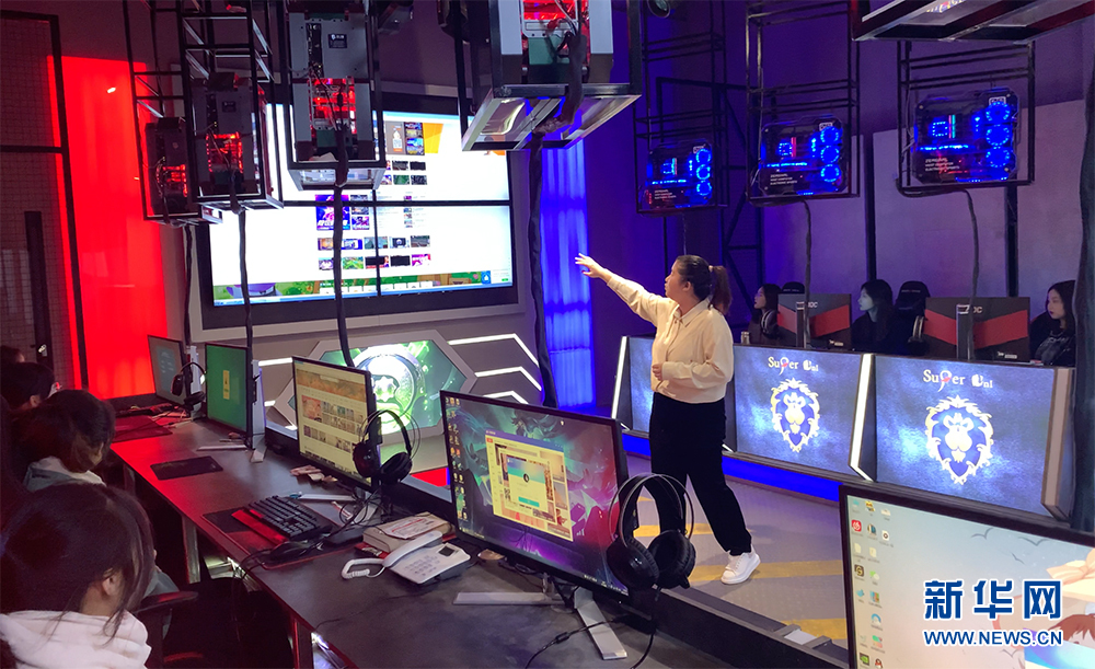 张诗尧为学生们展示各游戏平台的直播内容。新华网 夏铭阳 摄