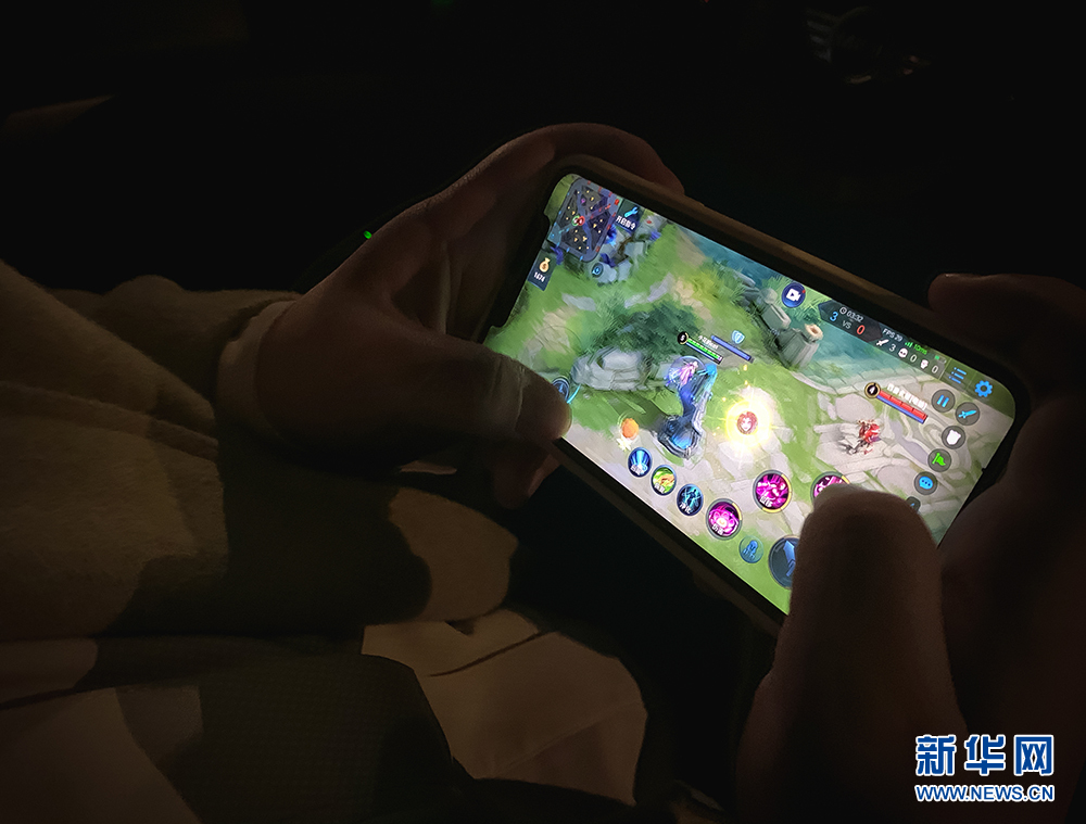 课余时间,张诗尧也会拿出手机,跟同学们组团打游戏放松一下。新华网 夏铭阳 摄