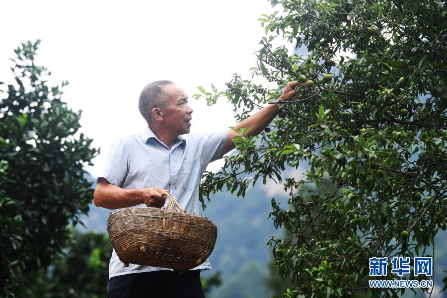毛相林在采摘脆李(2020年7月3日摄)。新华社记者 王全超 摄