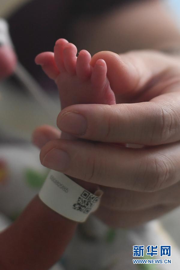 11月16日,护士在浙江大学医学院附属儿童医院新生儿重症监护室对早产宝宝进行抚触。