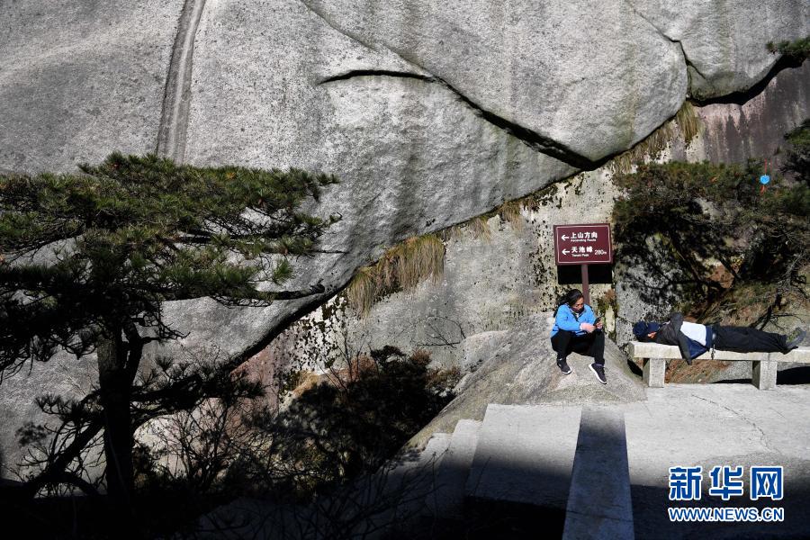 11月13日,中午过后游客减少,杨月红和徐胜利一起晒太阳休息。新华社记者刘军喜摄