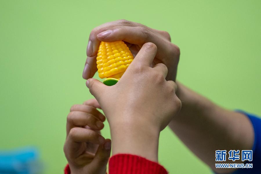 11月18日,在太原市灵星社区服务中心,李林峰为自闭症患儿上课。