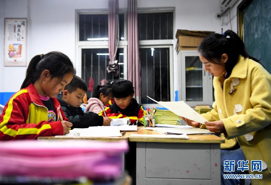 11月17日,王予川在给学生辅导功课。
