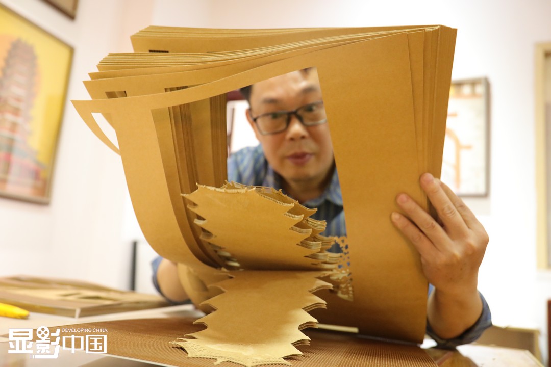 张寿疆正在查看雕刻好的作品。 新华网 王中庆摄