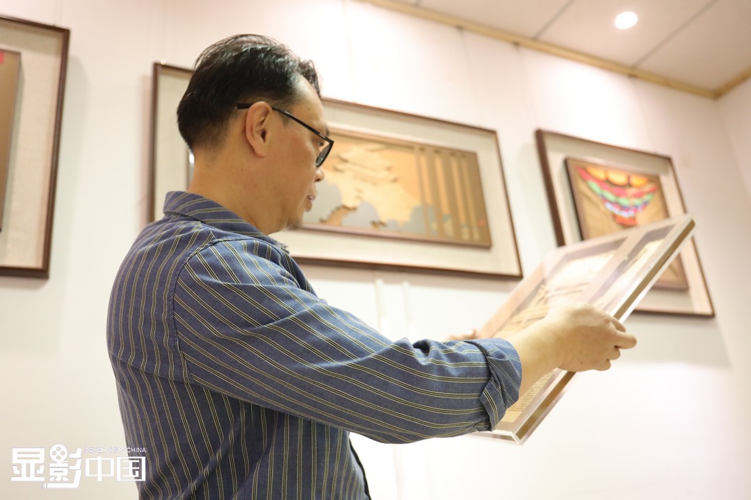 张寿疆正在查看雕刻好的作品。 新华网 王中庆摄
