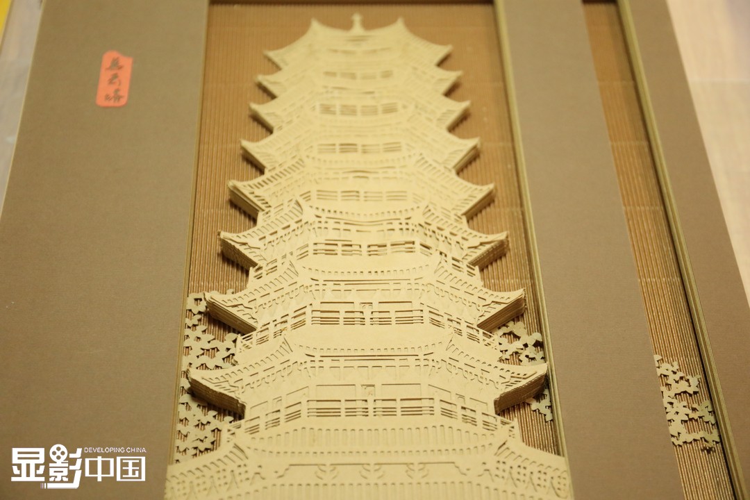 “慈云塔这幅作品一共用到了42层牛皮纸,每一层都不一样,最后粘贴起来,才能形成立体、细节丰富的慈云塔。”张寿疆说,古老而厚重的客家文化,通过纸雕的形式展现出来,那种层次和肌理是摄影和绘画无法表现出来的。 新华网 王中庆摄
