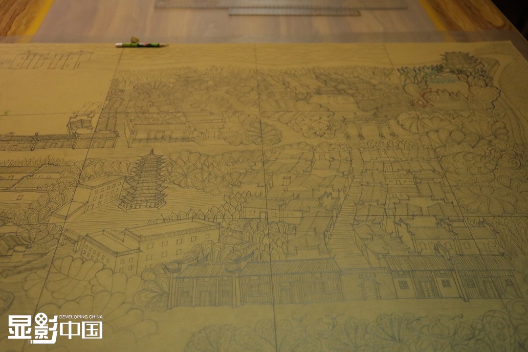 图为张寿疆正在绘制的纸雕底稿。新华网 王中庆摄