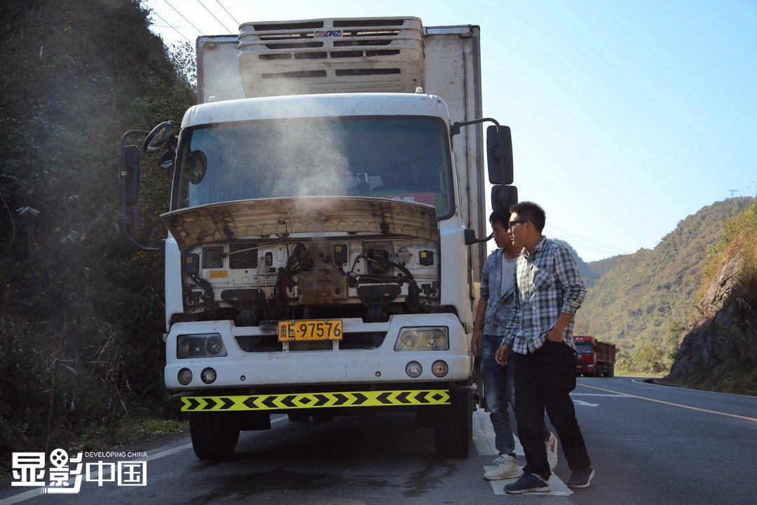 山路难行,经过一段数公里的长爬坡之后,货车突发故障“罢工”了。两人折腾1个多小时,才让车子重新上路。新华网 卢志佳摄