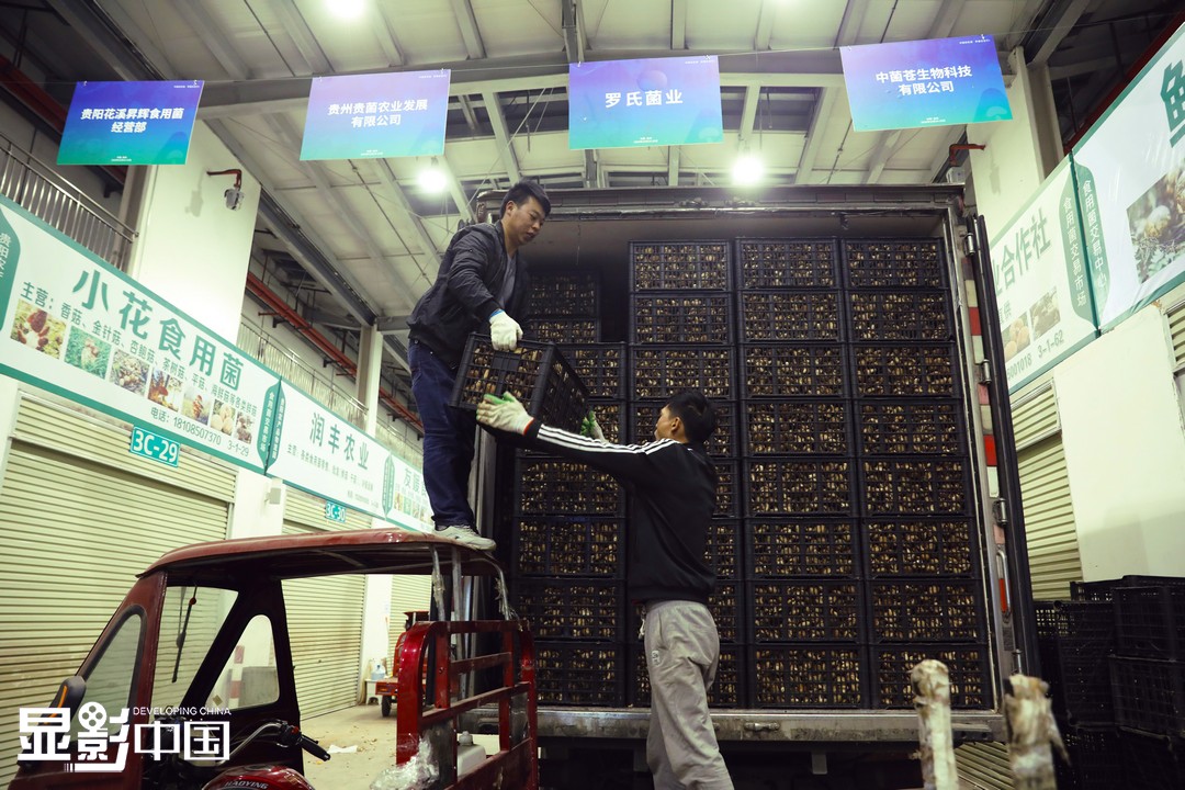货主安排的工人开始下货。据货主介绍,这一车10吨的鲜香菇接下来将被分销往贵州的各个市、州以及几个周边的省份,如果市场平稳的话,3天就可以销售完。新华网 卢志佳摄