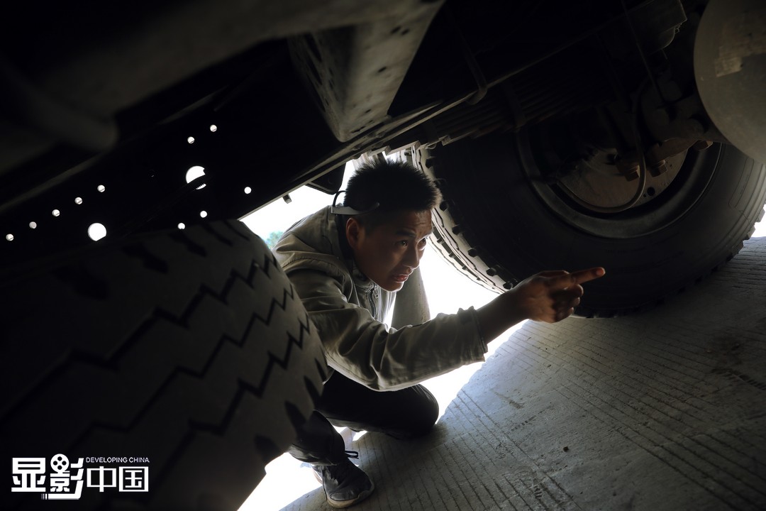 出发前,骆礼铭和兰兴州钻进车底,为车辆做最后一次“体检”。新华网 卢志佳摄