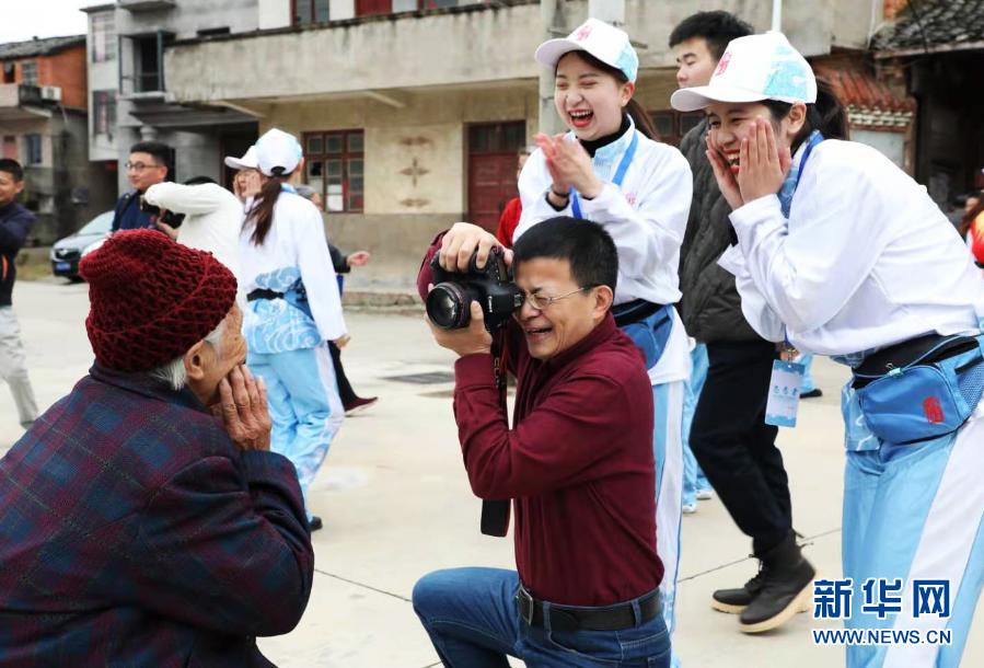 11月22日,志愿者在南昌市幽兰镇上魏村为农民拍照。