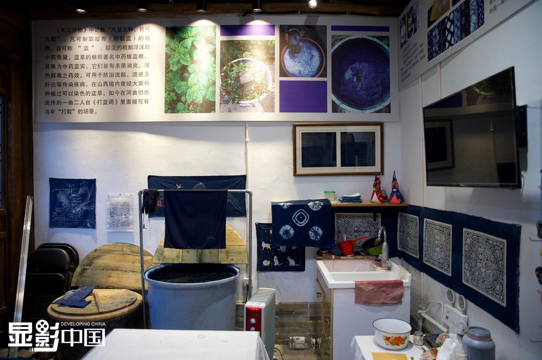 据赵慧介绍,天然染料与空气接触氧化后才会真正显色,为保证氧化均匀,染好出缸的染布需要快速展开进行挂晾。十几分钟后,染好的布料已从刚出缸时的草绿色变为深蓝色。新华网 武斌/文 付宇鹏/摄