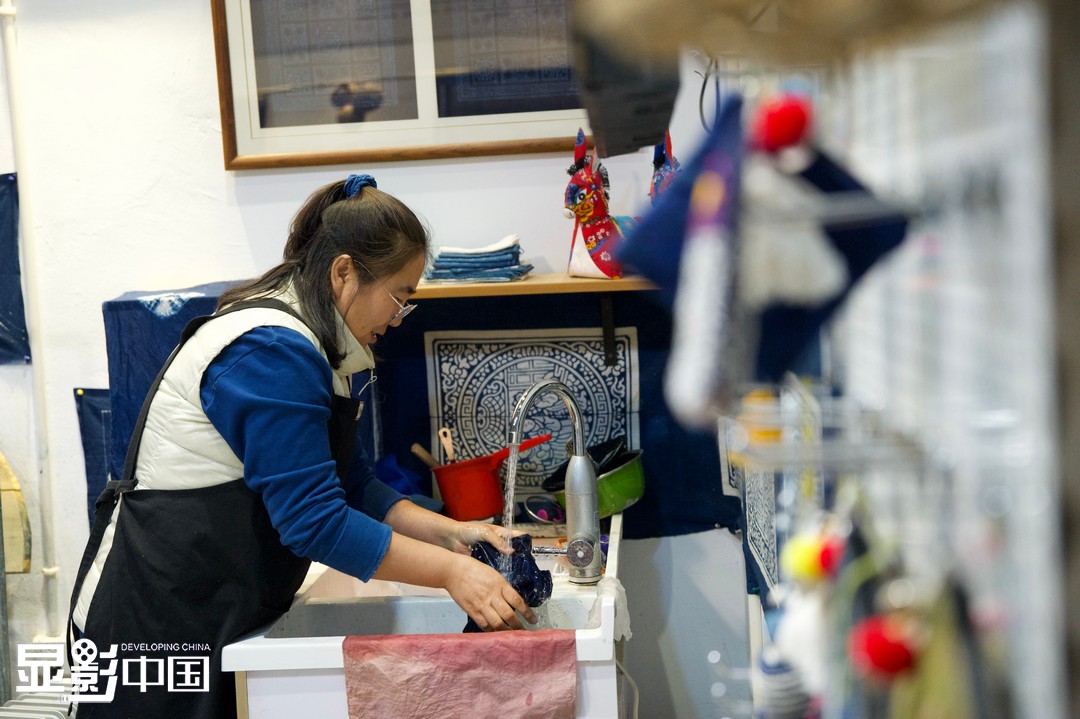天然染色技艺——草木染传承人赵慧的一天从染布开始。据赵慧介绍,草木染在山西境内自古有之,忻州市河曲县流传的二人台《打蓝调》中就有相关场景的描述。“随着时间流逝,天然染色正在逐渐淡出人们的视线。”赵慧说。