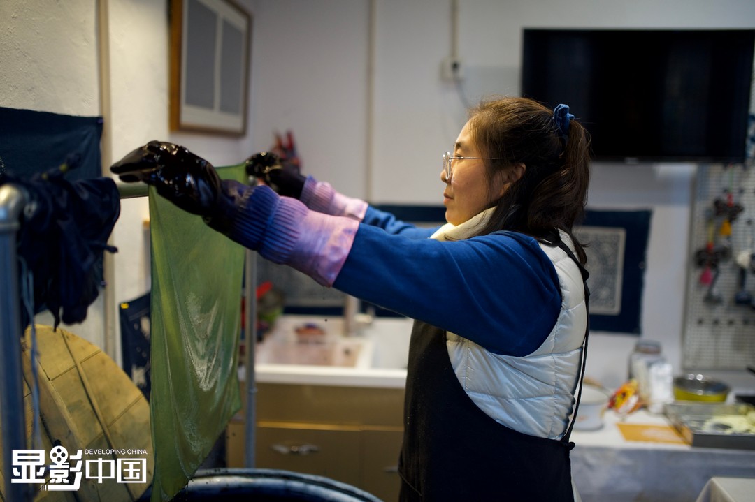“我们忻州是杂粮之都,我正计划着把忻州的小杂粮制成染料。现在黑豆已经成功了,能染出来漂亮的紫色。”正说着,赵慧已完成布料染色,开始进行挂晾。新华网 武斌/文 付宇鹏/摄