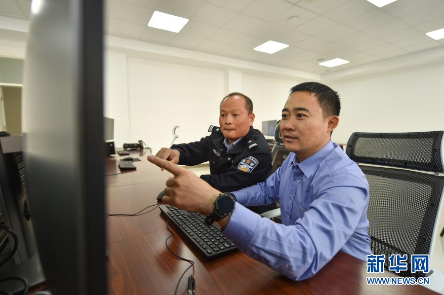在天津市公安局物证鉴定中心,张忻鑫(右)和同事一起研究案例(11月25日摄)。新华社发(孙凡越 摄)