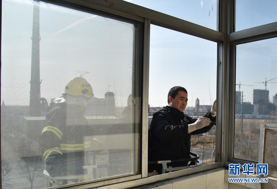 张忻鑫(右)在现场进行痕迹采集(2016年2月17日摄)。新华社发