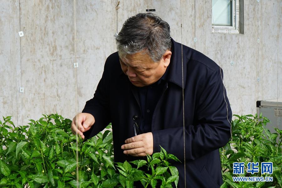 11月27日,关慧明在乌兰察布市冷凉蔬菜院士专家工作站温室大棚内查看蔬菜长势。新华社发(侯维轶 摄)