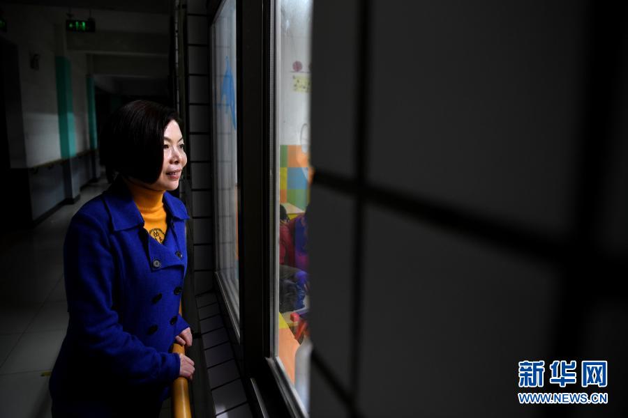 11月25日,芜湖市盲人学校校长席蔚菁在教室外查看学生自习情况。新华社记者 刘军喜 摄
