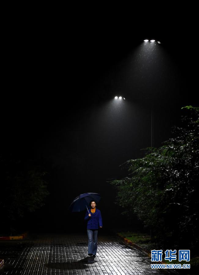 11月25日,芜湖市盲人学校校长席蔚菁晚上在校园里巡查。新华社记者 刘军喜 摄
