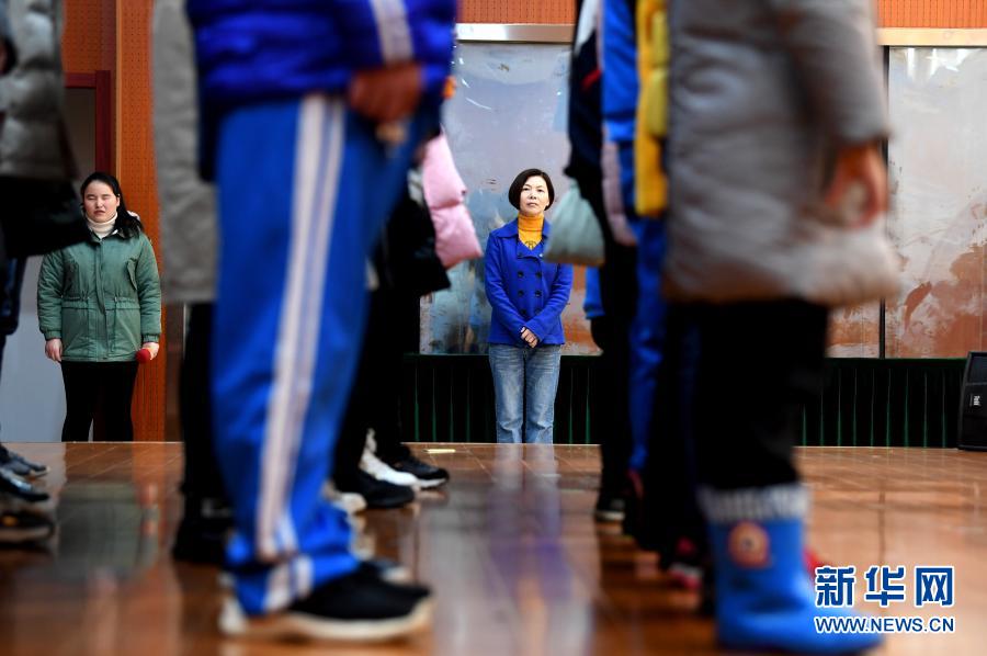 11月25日,芜湖市盲人学校校长席蔚菁观看盲生为即将到来的国际残疾人日排练音乐节目。新华社记者 刘军喜 摄