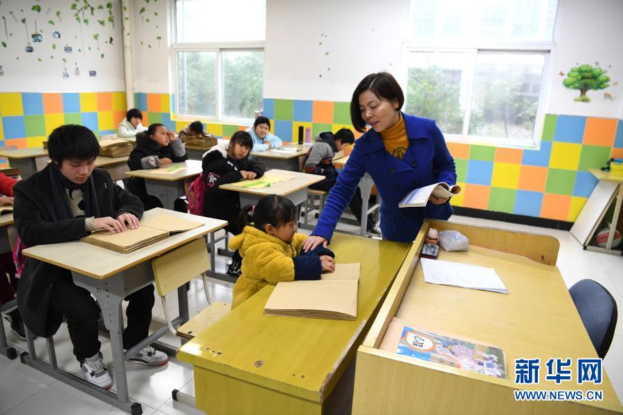 11月26日,芜湖市盲人学校校长席蔚菁在为盲生上课。新华社记者 张端 摄