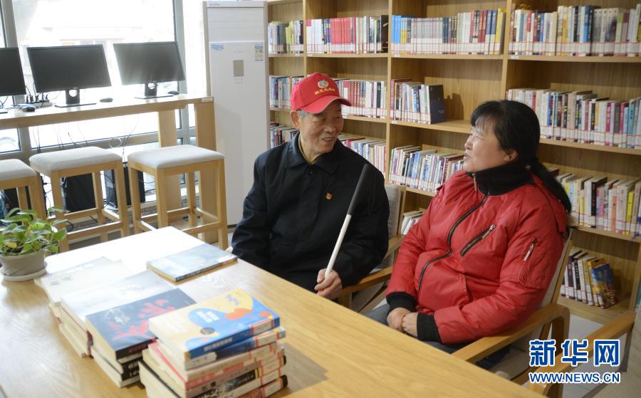 12月1日,张广明(左)带盲人朋友张朝华来到宛平地区居民社区活动室聊天。