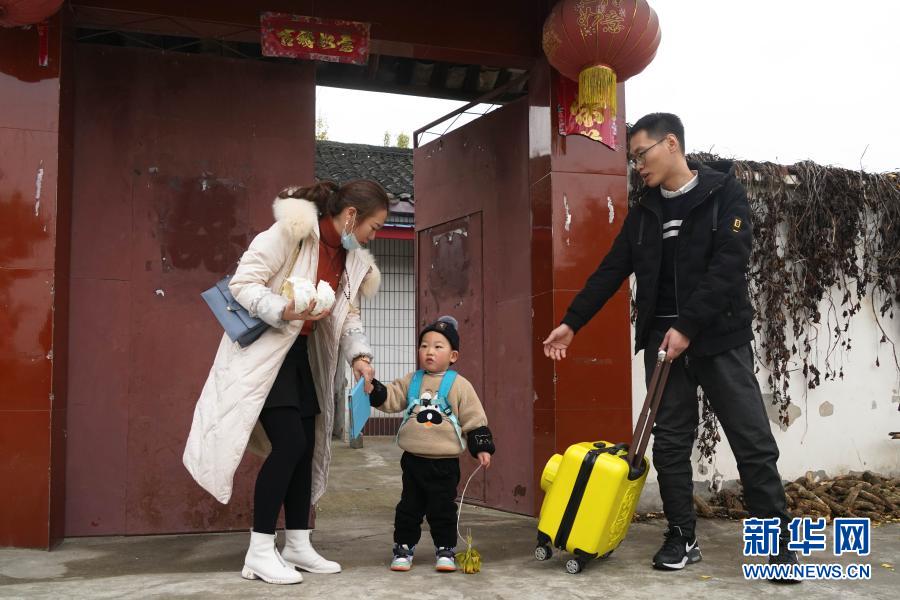 12月1日,龚桂林和妻子回老家接儿子。新华社记者 胥冰洁 摄