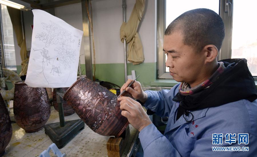 从2005年起,北京珐琅厂有限责任公司开始招收聋哑人技工,经过老技师们的精心培养,目前有17位聋哑人成为景泰蓝技师,有些还成为景泰蓝技艺国家二级技师。通过学习景泰蓝技艺,这些聋哑人在无声的世界里有了一个多彩的人生。新华社记者 李欣 摄