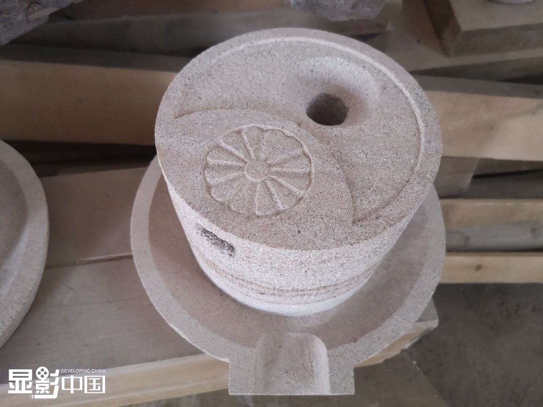 上世纪七八十年代,一副石磨可以卖3块钱。那时有句俗语“早上没饭吃,晚上有肉吃。”讲的就是石匠通过石磨极大改善生活的状况。岁月流逝中,樊月东对石匠这门手艺渐渐琢磨出了新的乐趣,小到精巧的茶壶,大到挂满半面墙的装饰画都从他的手下一件一件凿出。新华网 刘晓丽摄