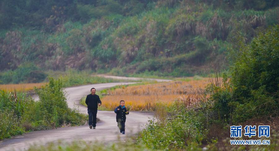 午饭后,江昊天(右)和江国南一起外出散步(12月3日摄)。新华社记者 胡晨欢 摄