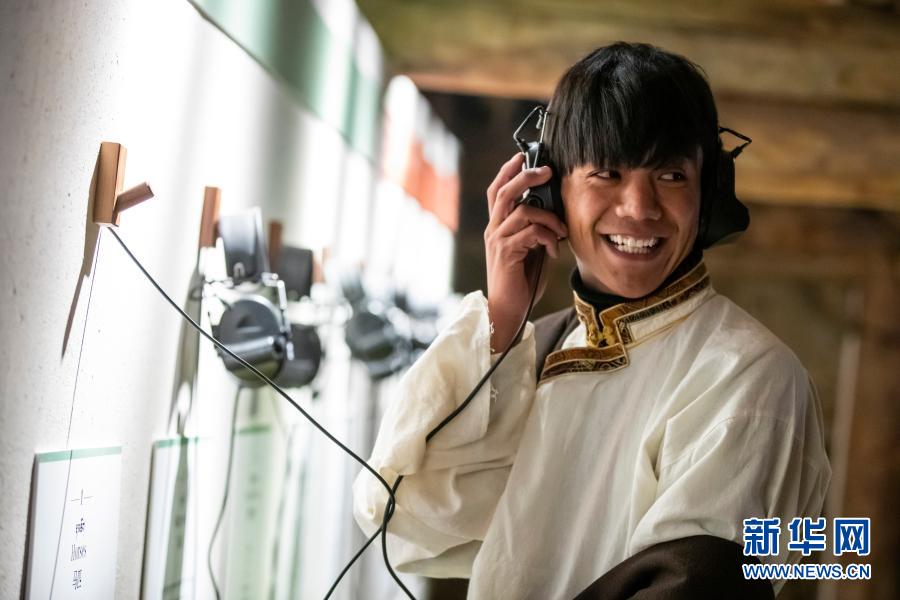 在理塘县勒通古镇的喜马拉雅之声微博物馆,丁真拿起耳机听马匹的声音(12月2日摄)。在这个微博物馆,游客可以体验藏族传统乐器,聆听马蹄声等声响,观看藏族传统音乐相关的视频。当地通过老城区改造等一系列措施,打造出著名景区“千户藏寨”,包括勒通古镇、仁康古街、长青春科尔寺等,集中展现理塘的历史文化魅力。这里将成为丁真未来的工作场所之一。新华社记者 沈伯韩 摄