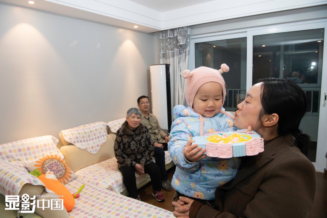 11月25日傍晚,结束了一天的工作,李之铟回到家中陪伴孩子。