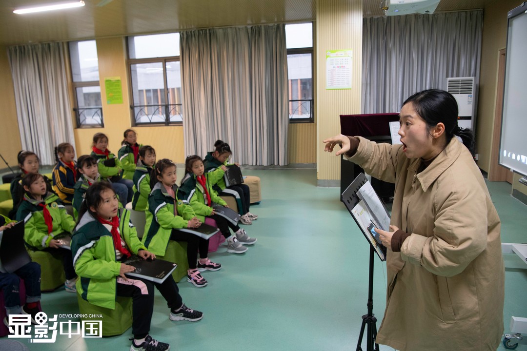 合肥市贵阳路小学的音乐教师李之铟疫情后比往年更加忙碌而充实,除了传授本校的音乐课程,她还义务承担起合肥星斗小学、包河区青少年活动中心等另外两所教学点艺体课程的走教任务,从周一到周五,她的日程表安排得满满当当。11月25日,李之铟在合肥市星斗小学给学生们上音乐课。
