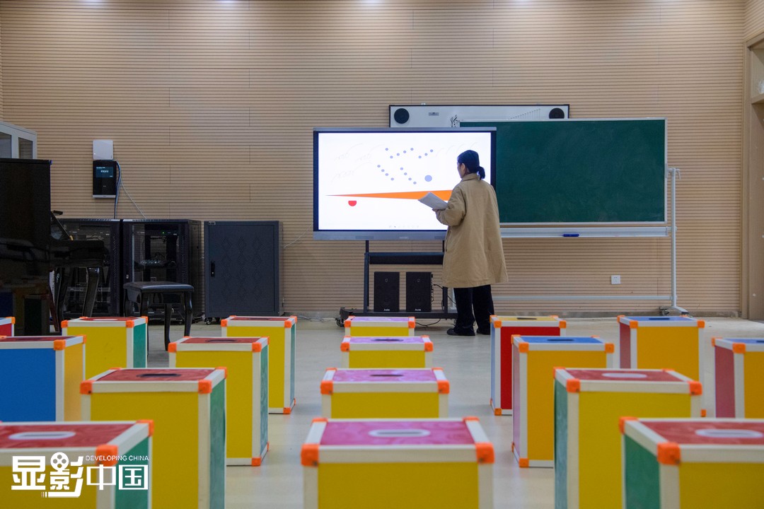 11月25日上午,合肥市贵阳路小学,每次上课前,李之铟都会提前来到教室,调试设备。