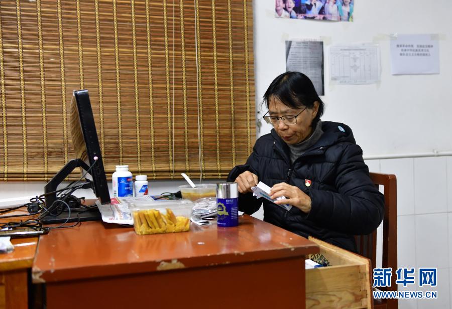 早上六点多,张桂梅在吃药(12月2日摄)。新华社发(陈欣波 摄)