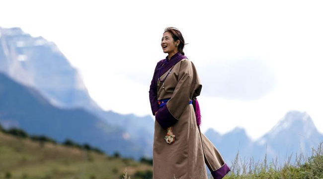 处是白皑皑的雪山,近处是绿油油的草地。在黑色牦牛毛帐篷边上,外婆一边搅着牛奶(从牛奶中提炼酥油),一边唱着悠扬动听的“波央”(波密民歌)。
