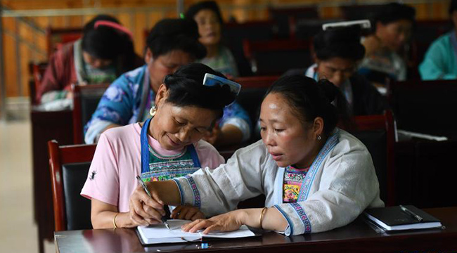 “五中全会新目标,巩固脱贫出新招。乡村振兴落实好,幸福生活乐陶陶。”乌英夜校的妇女们用一曲自创的山歌,唱出了对美好生活的向往。