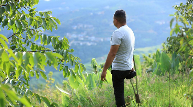 云南省大理白族自治州弥渡县苴力镇栗子园村,一座远离尘嚣的山头,云深林密处,驻扎着一位“单腿硬汉”——毕怀中。